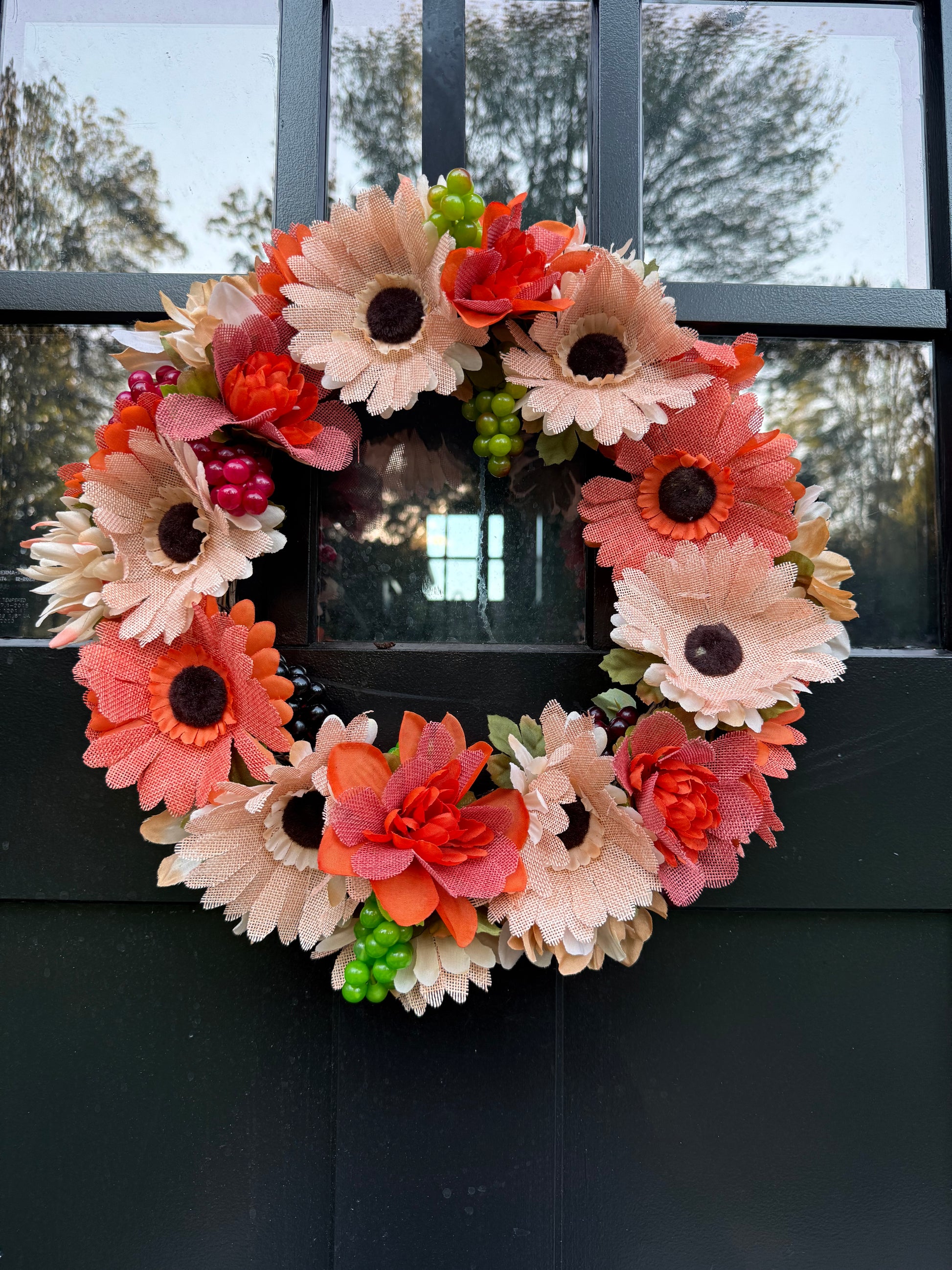 Interspersed with lush faux grapes in green and deep purple berries, this wreath bursts with natural texture and color—perfect for fall vibes.