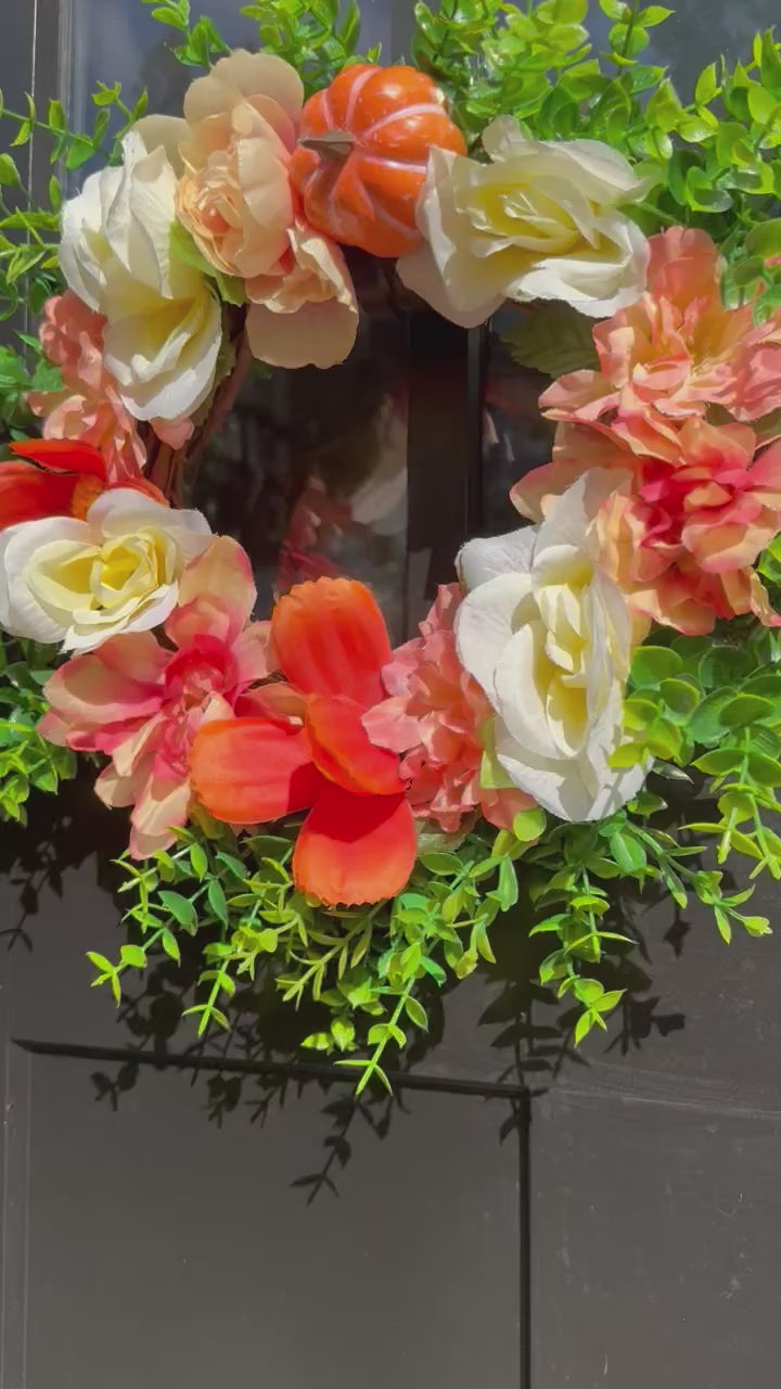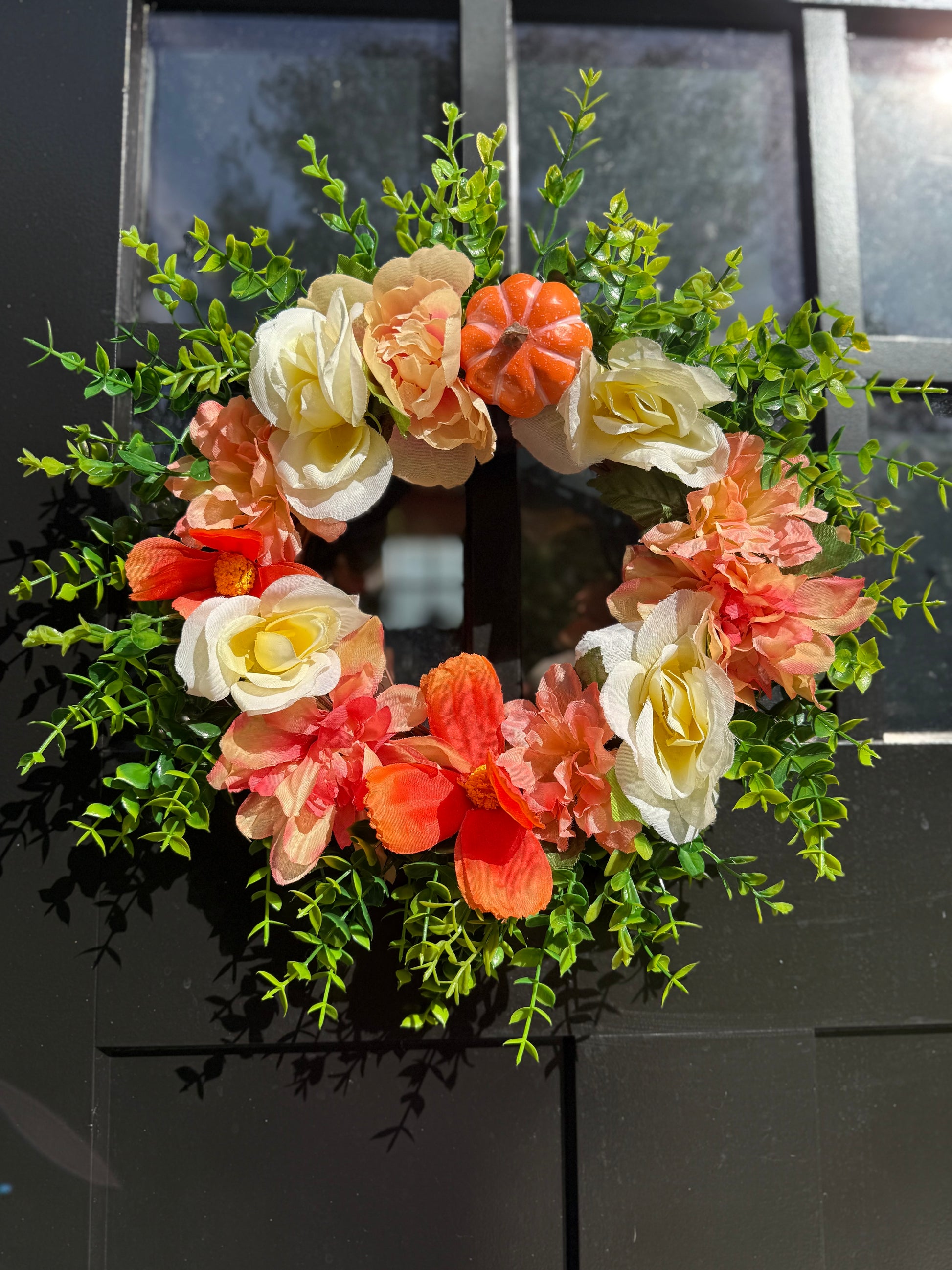 Pumpkin Wreath - Cream & Orange Fall Floral Door Decor - Thanksgiving Door Decor