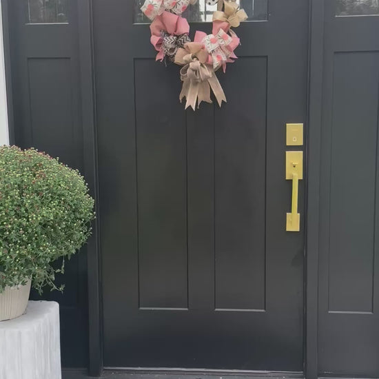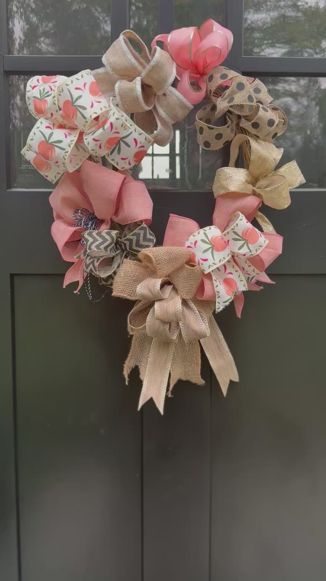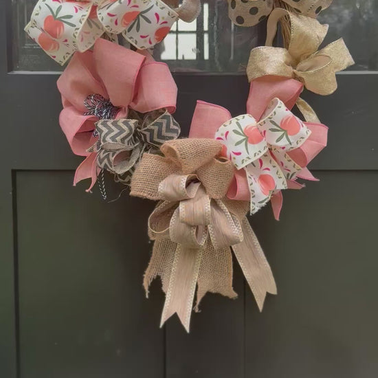 • Handmade with high-quality ribbon: The bows are made from a mix of wire-edged ribbons, including peach, burlap, and a fun polka dot pattern.