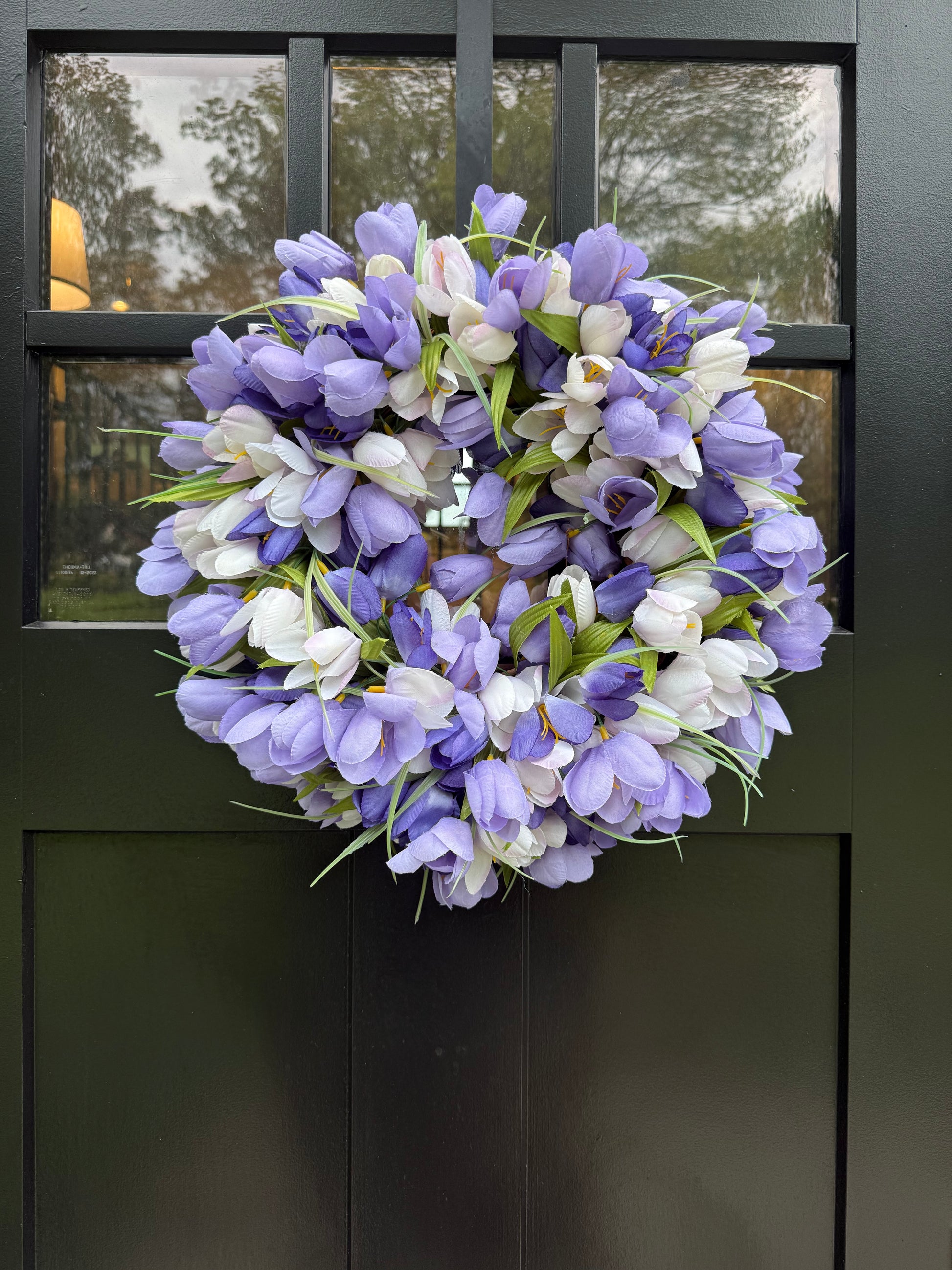 Welcome spring with this breathtaking purple and white tulip wreath!